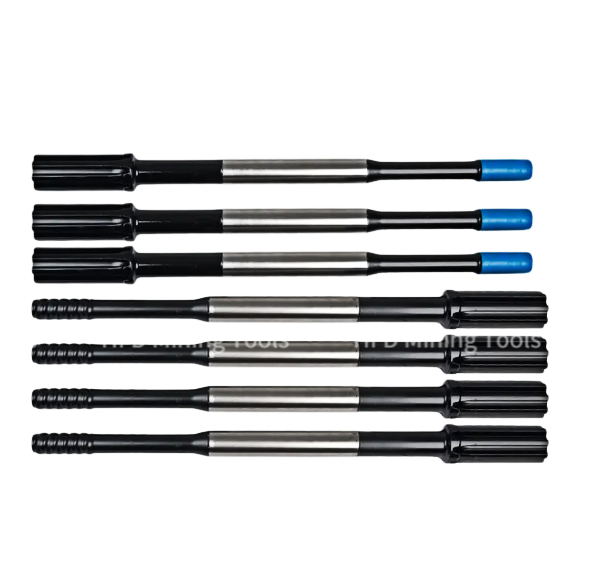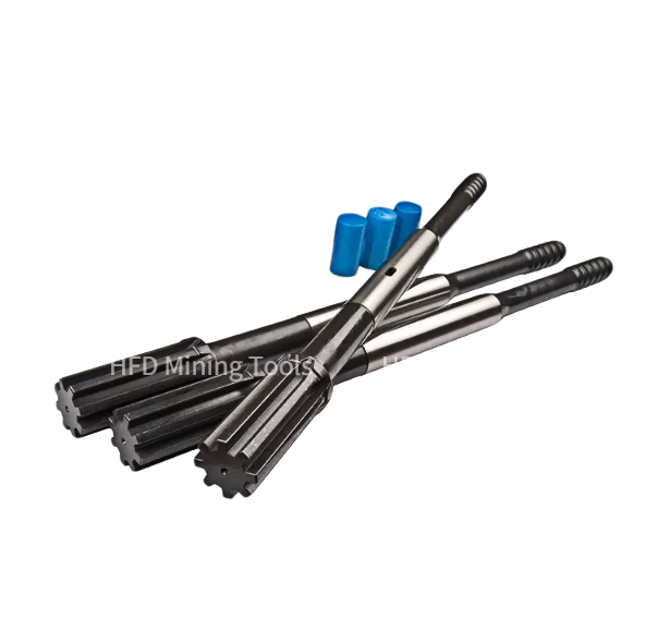▲Shank adapters are used for transmitting power from the rock drill to the drill stems. |