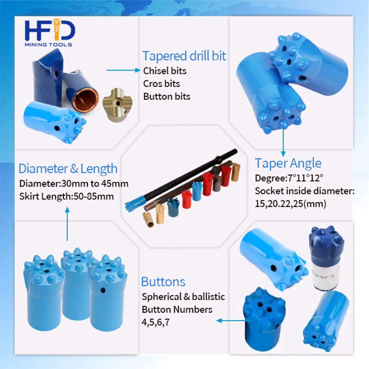 Wat d'Produktkonsultatioun a Rock Tool Servicer ugeet, kënne mir déi gëeegent Fielsbuerinstrumenter a Buerkonstruktiounsschemaen auswielen no de Baubedéngungen vum Benotzer, Fielstyp, Mineralbedéngungen an Buerausrüstung, fir d'Benotzer ze hëllefen d'Bohreffizienz ze verbesseren, d'Bohrung ze reduzéieren Käschten, a besser ëmfaassend Virdeeler a méi héich Aarbechtsproduktivitéit erreechen.