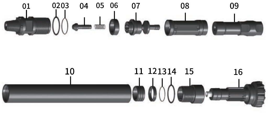 | 01 | Top Sub | 42Kg | 09 | Piston | 41Kg |